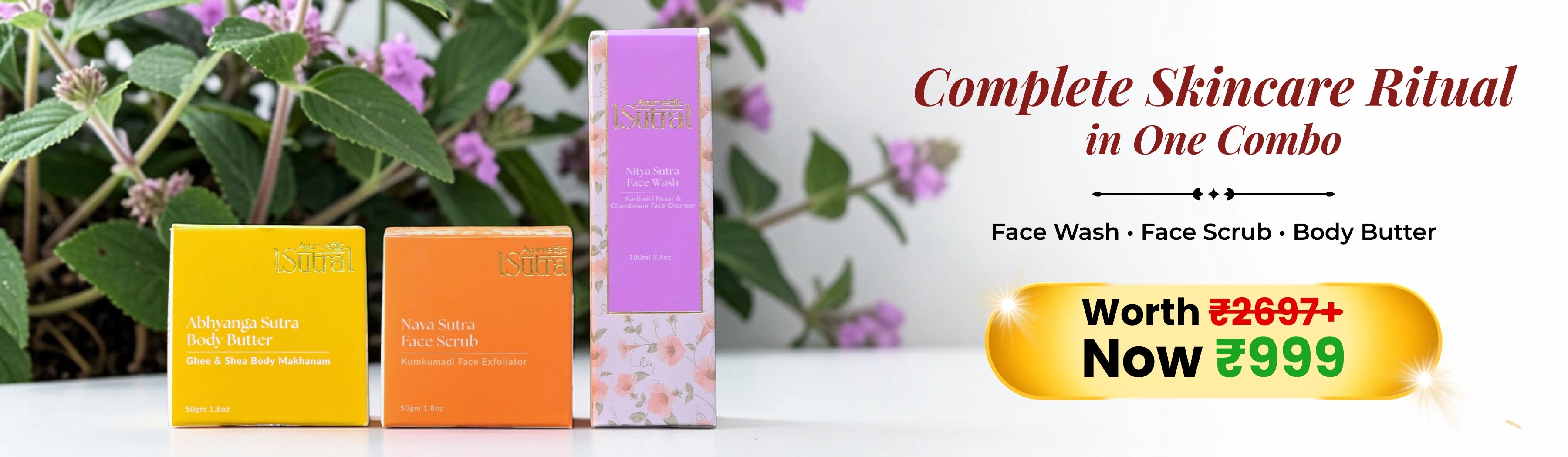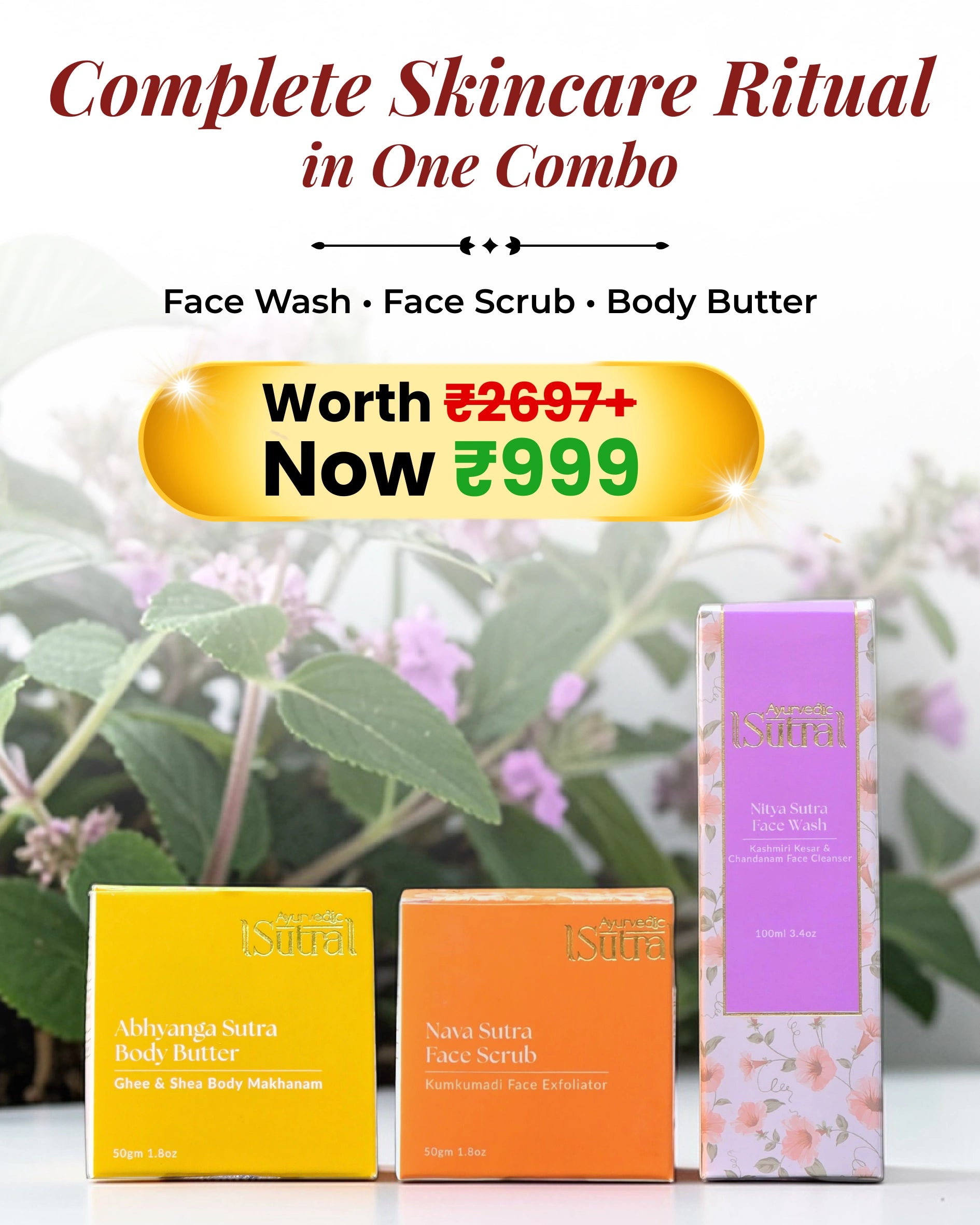Ayurvedic Sutra Skincare Gift Set - Nitya Sutra Face Wash, Ojas Sutra Day Cream & Vayas Sutra Age Defying Cream